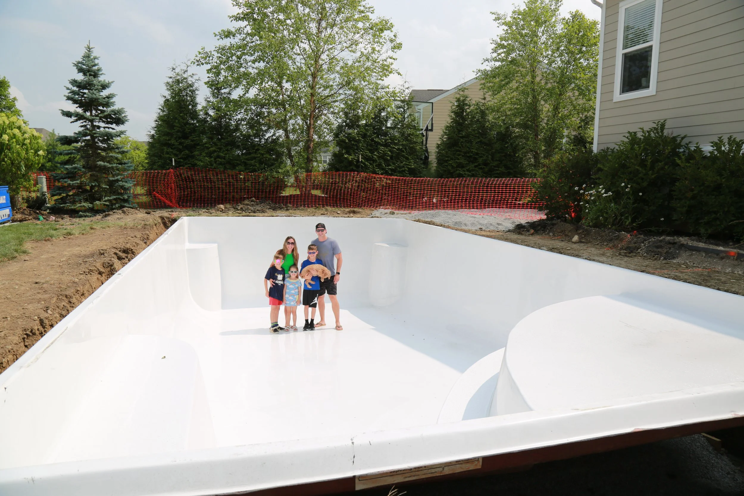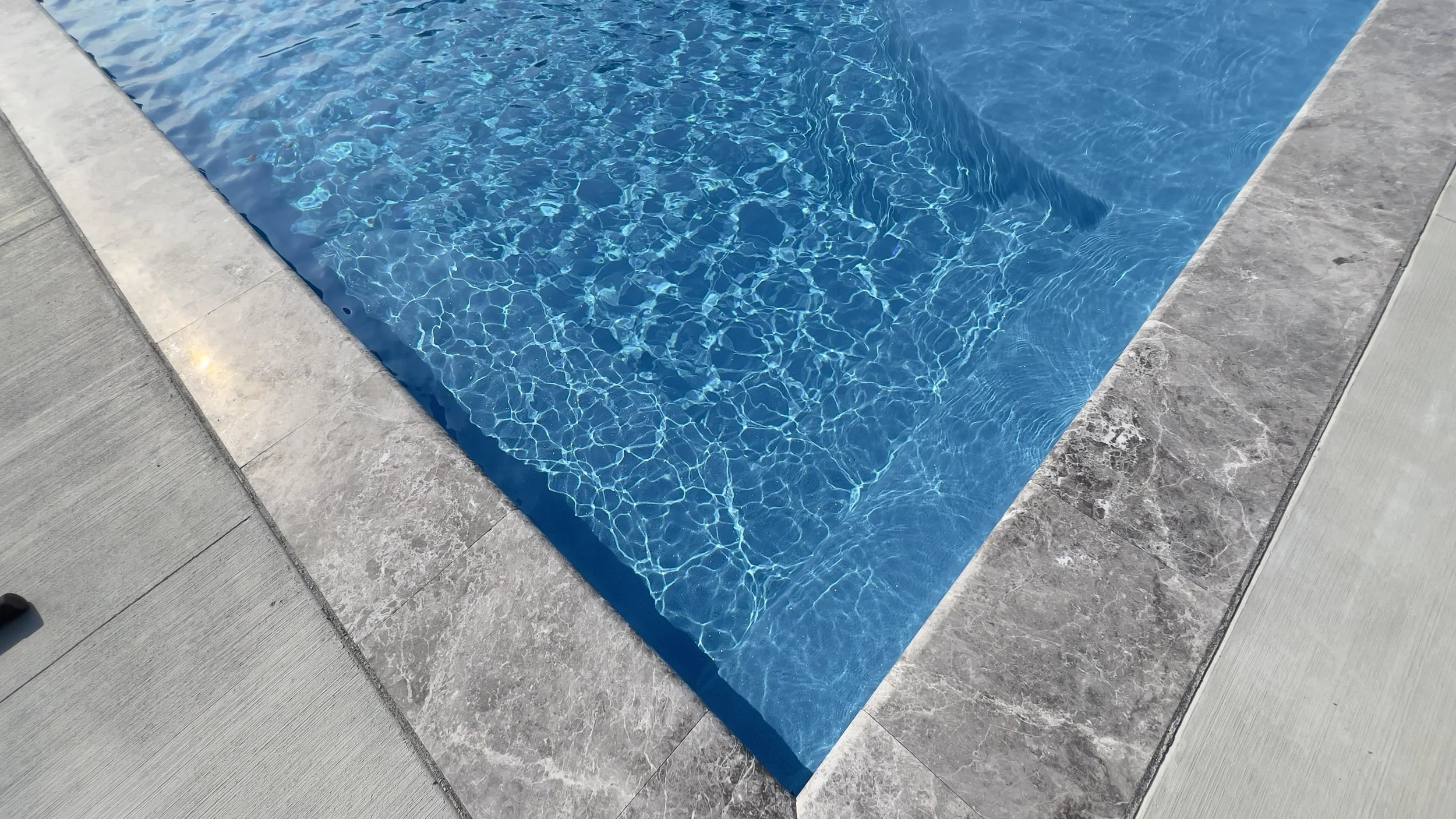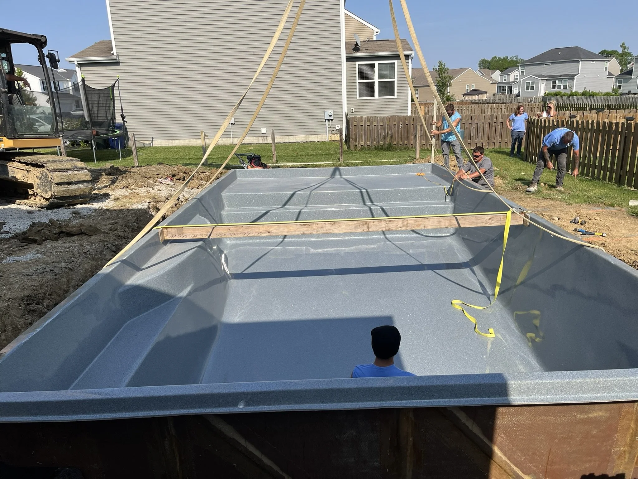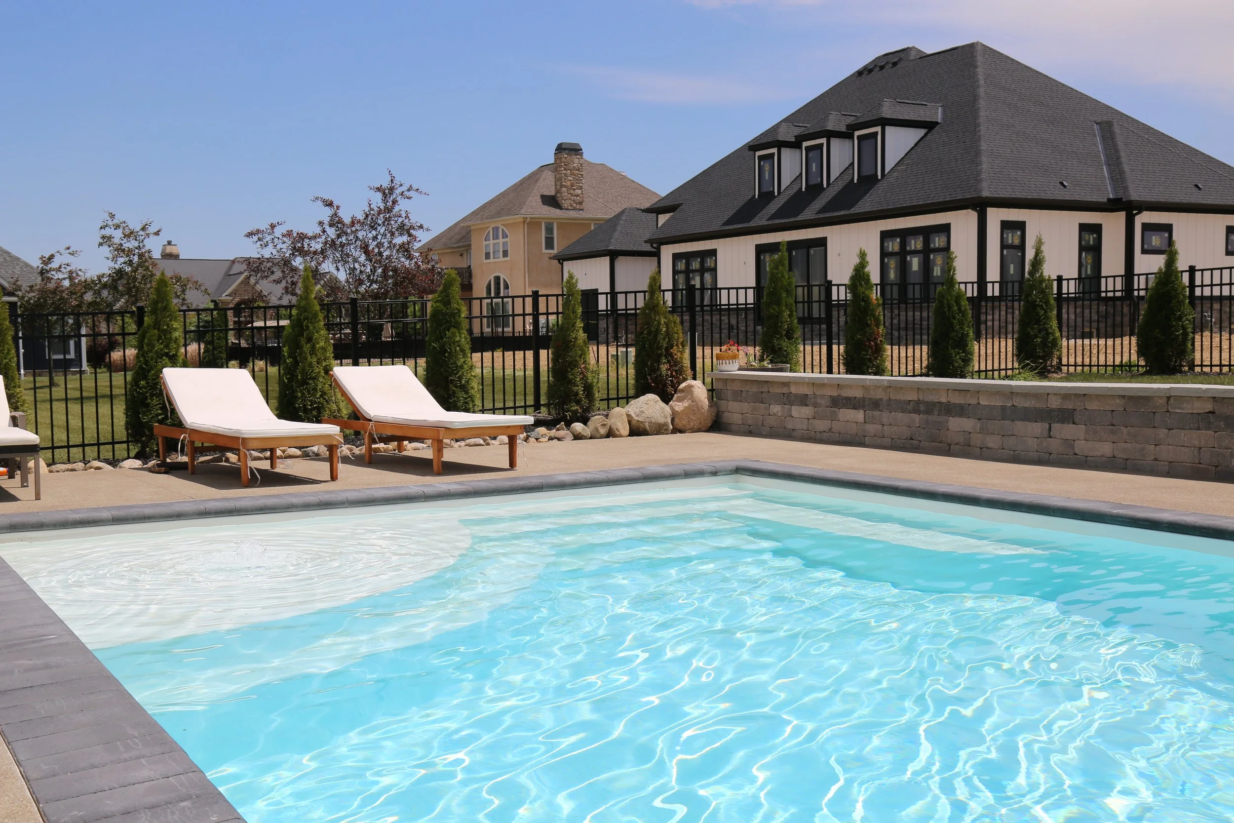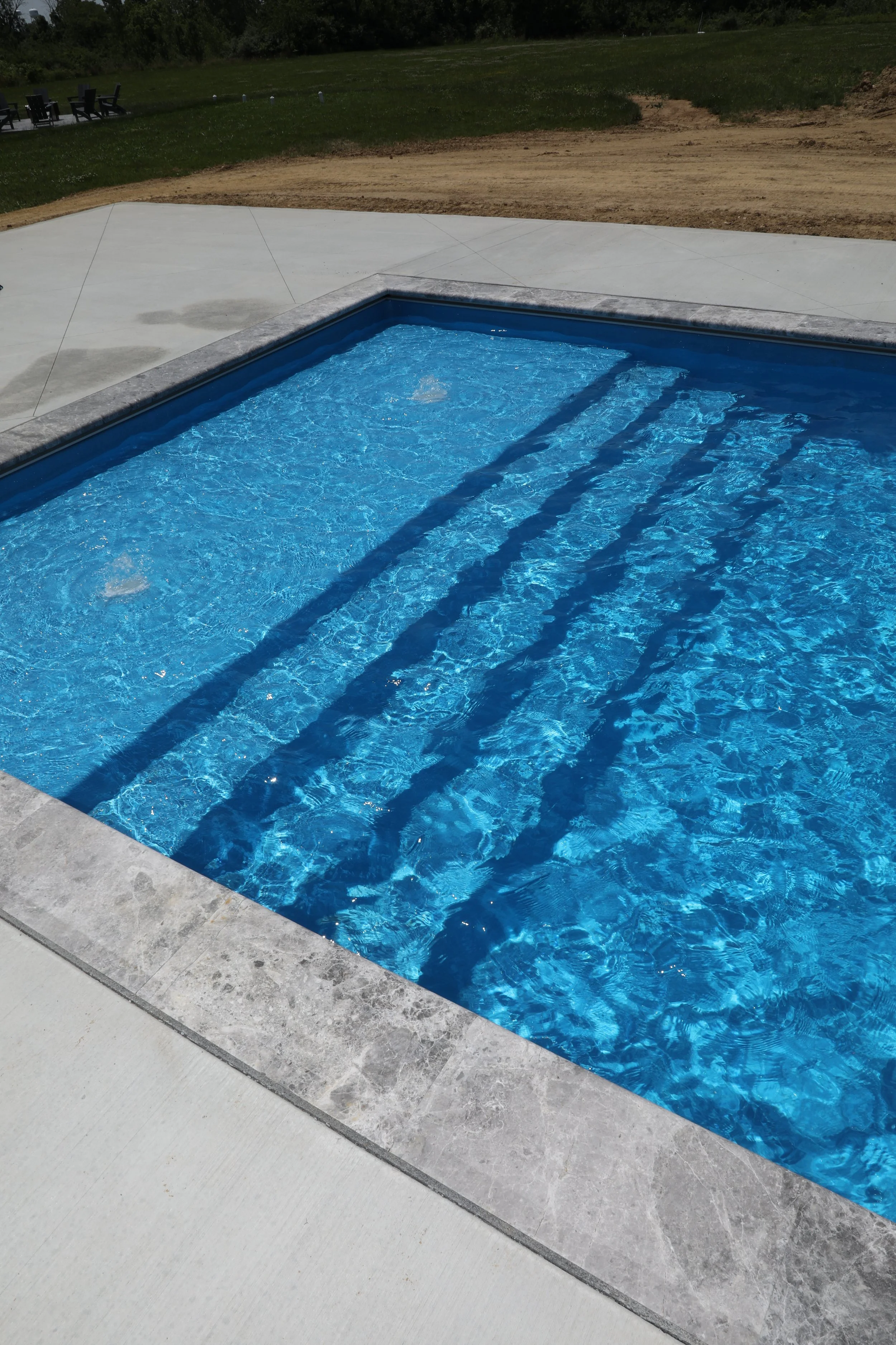 Lake Superior Model with Ocean Grey Pool Coping in 16". Columbus, Ohio Fiberglass Pool Builder.